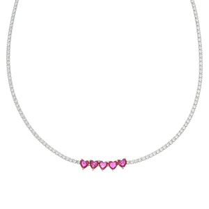 AMEN CLT5CUBRBZ Collana Tennis Cinque Cuori Rubino