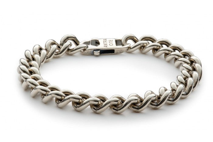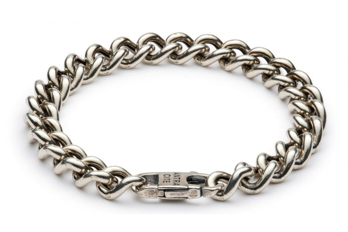 Bracciale realizzato catena grumetta tonda in Argento 925 ad effetto invecchiato e moschettone logato Antracite.