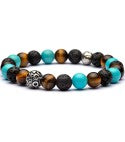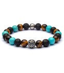 - pietre dure naturali certificate: occhio di tigre marrone, pietra di lava e aulite turchese