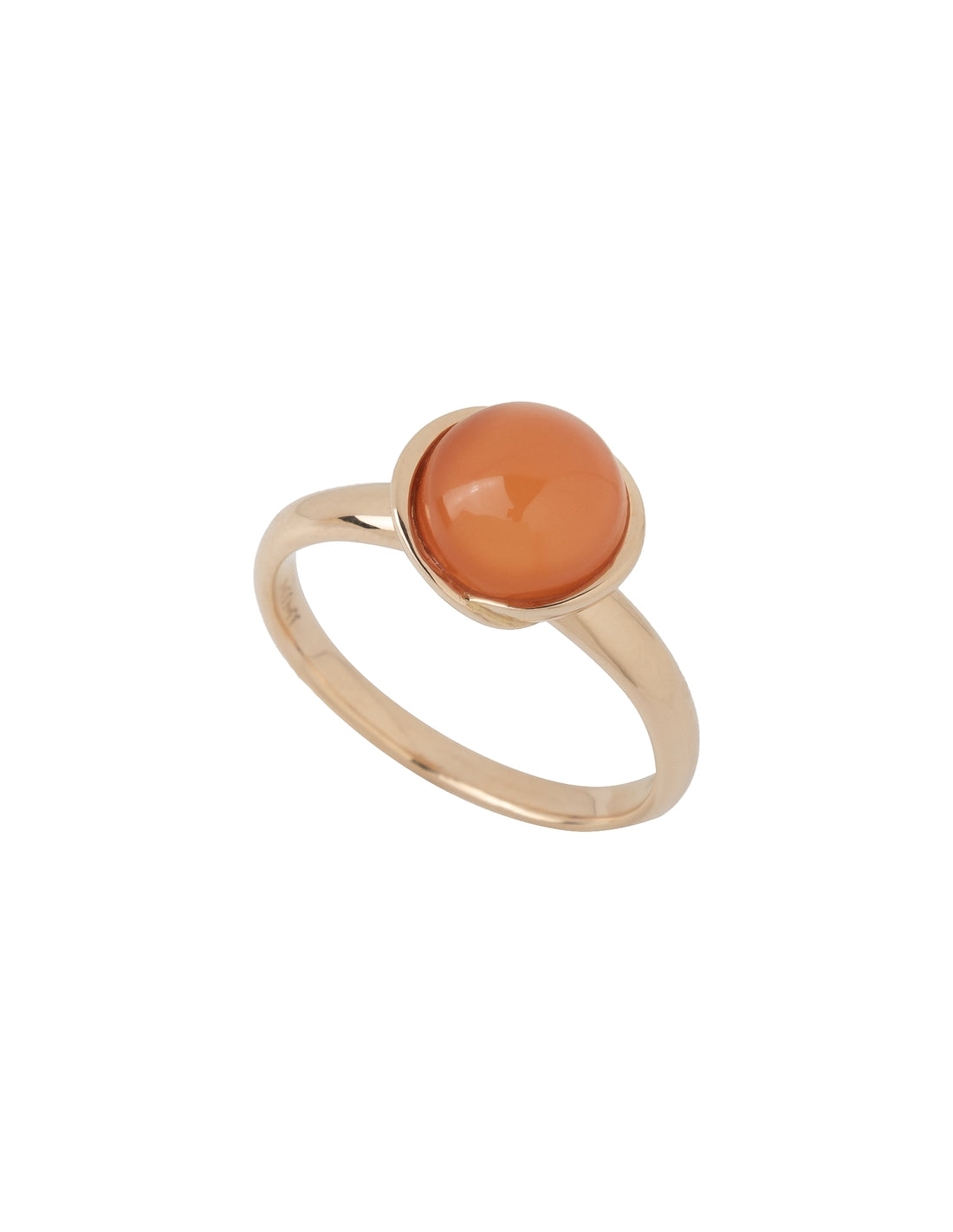 Anello in oro rosa 18K, corniola 8x4mm taglio bowling cabochon mis. 54