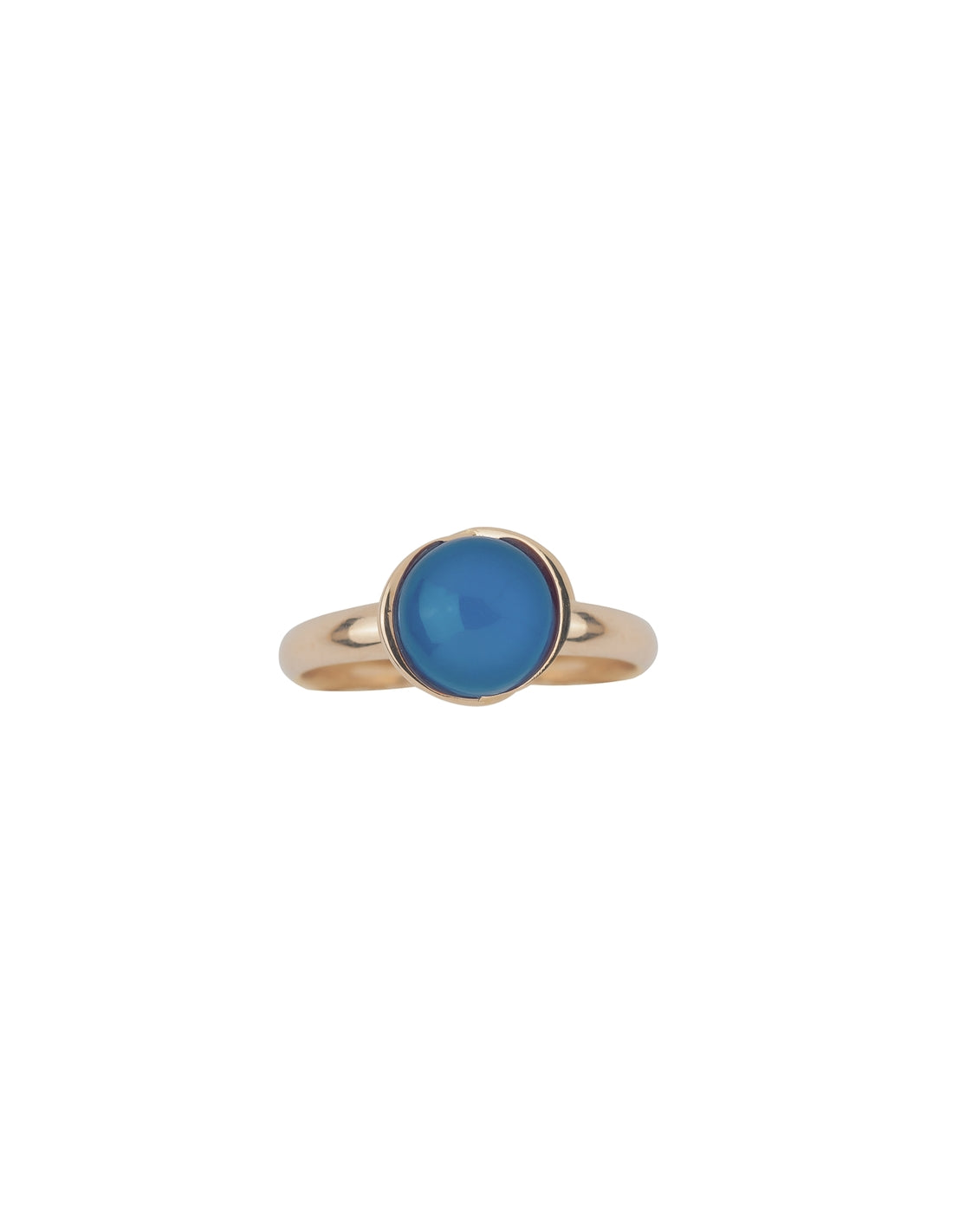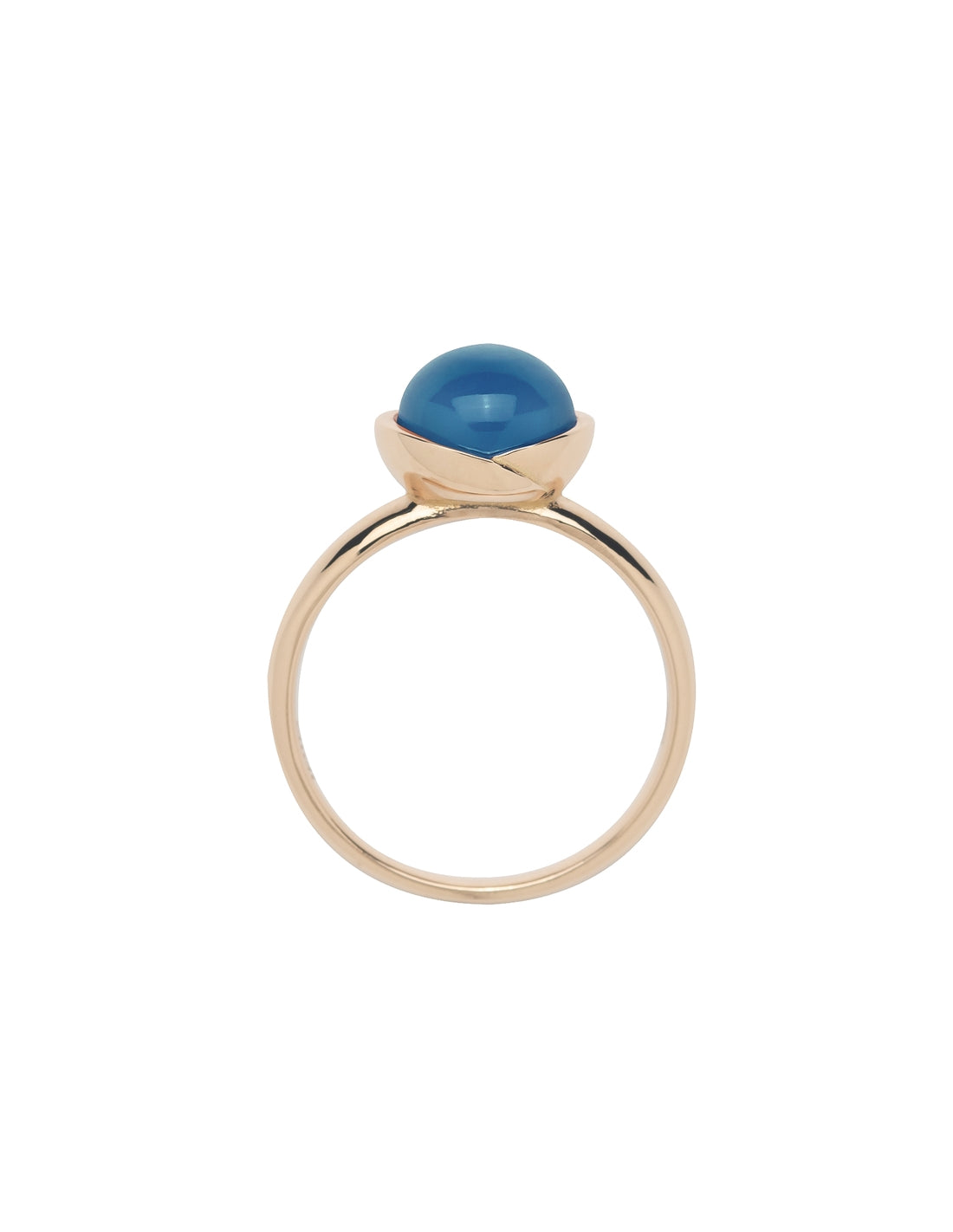 Anello in oro rosa 18K, topazio london 8x4mm taglio bowling cabochon mis. 52