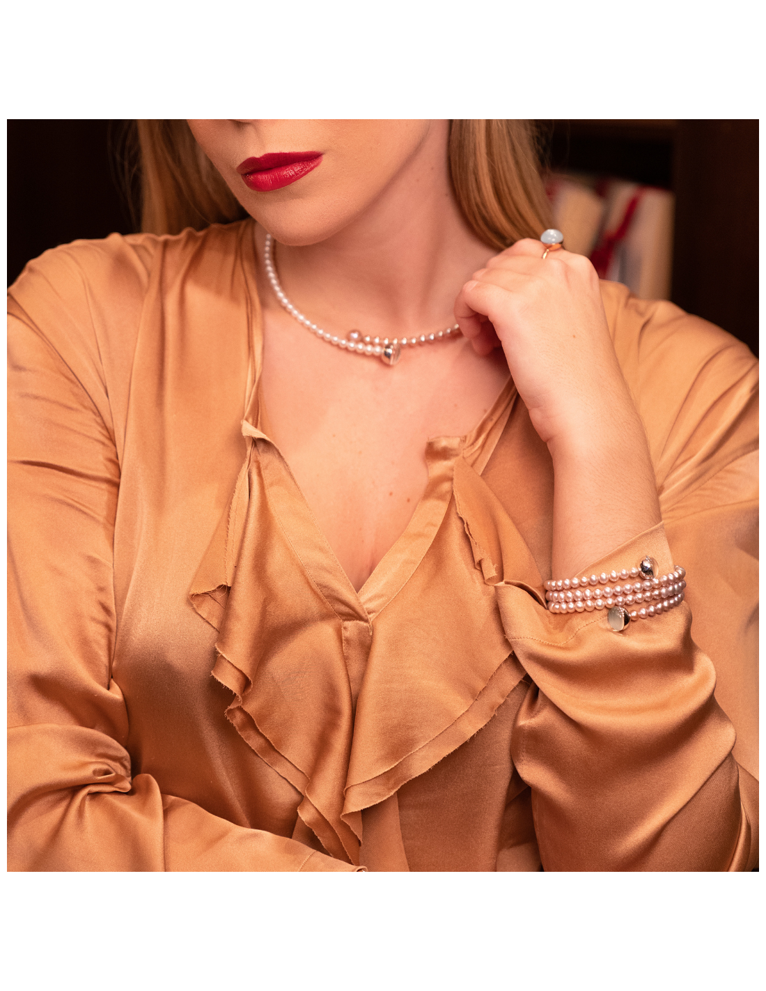 Anello in oro rosa 9K, tripletta pasta turchese, madreperla, cristallo di rocca mis. 56