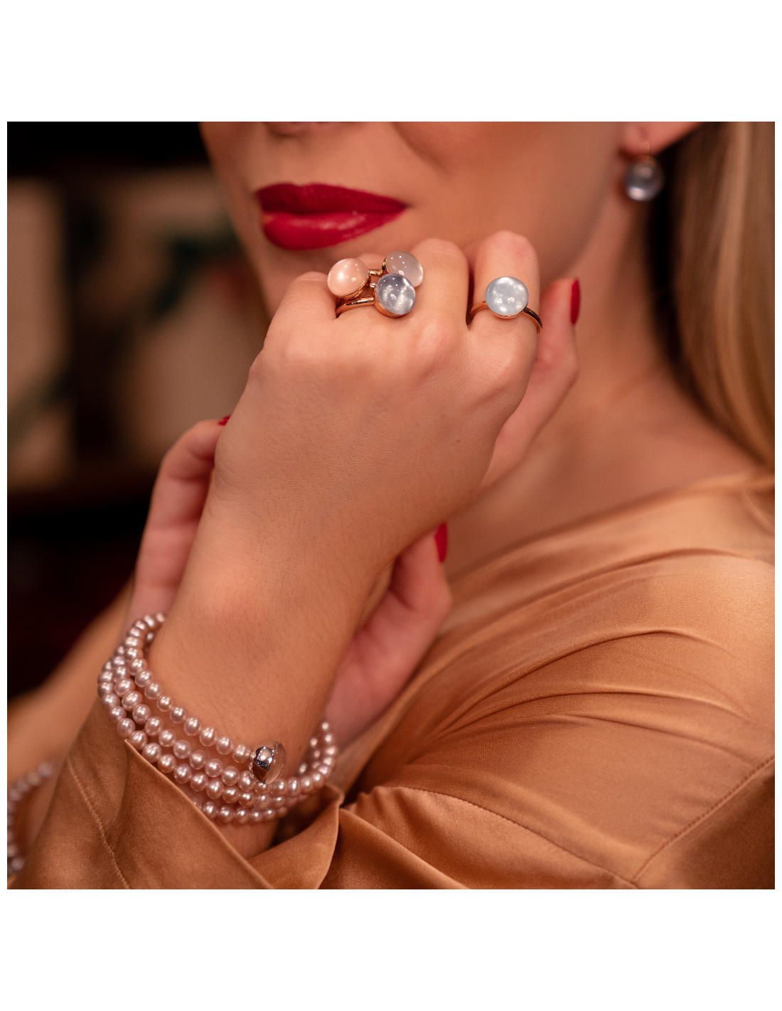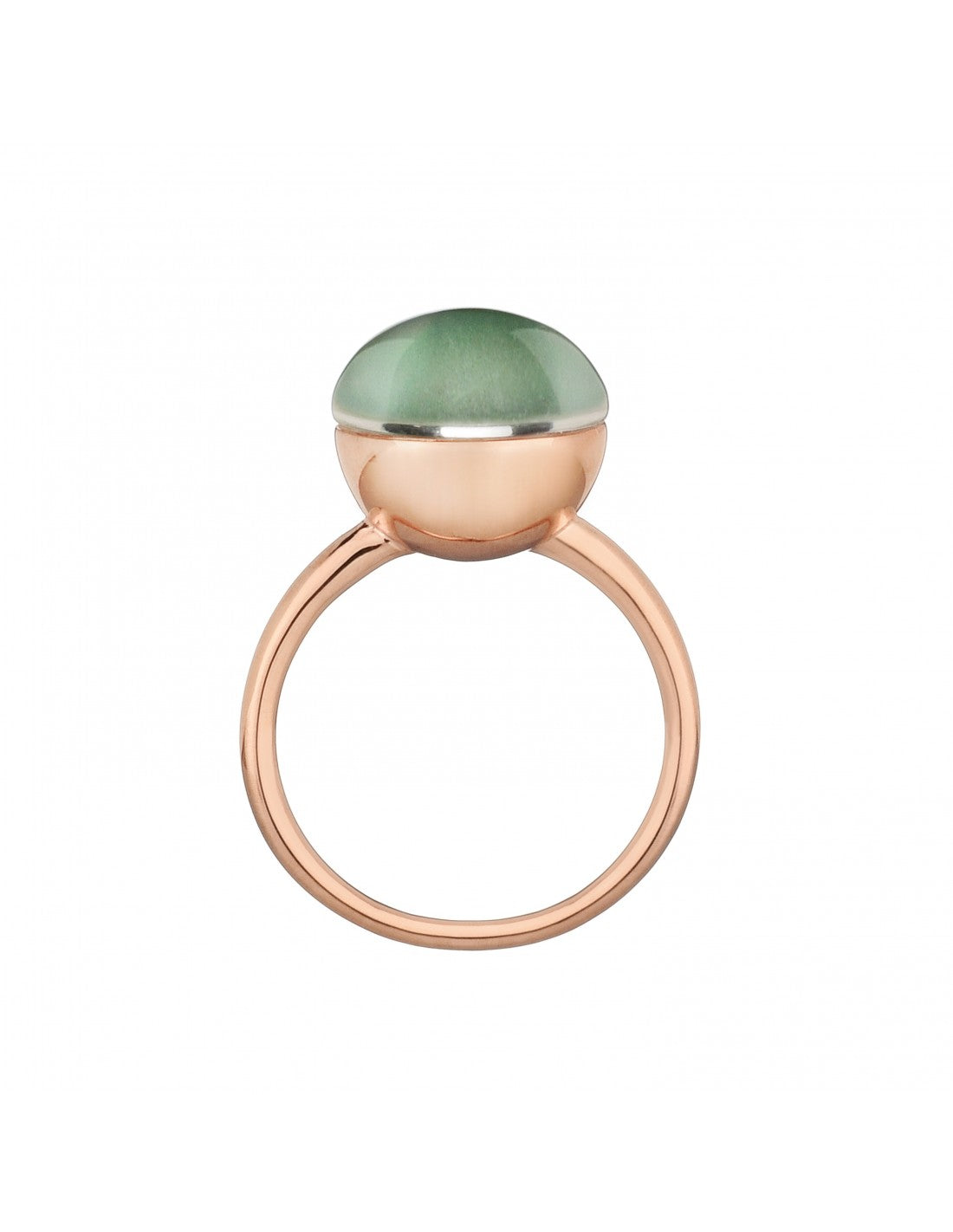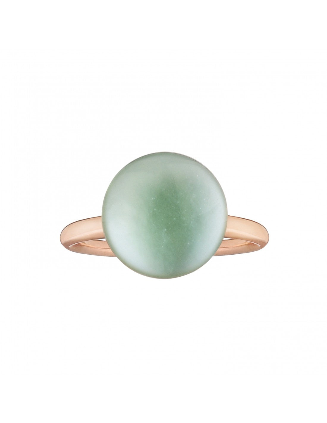 Anello in oro rosa 9k, tripletta crisoprasio, madreperla, cristallo di rocca mis. 54
