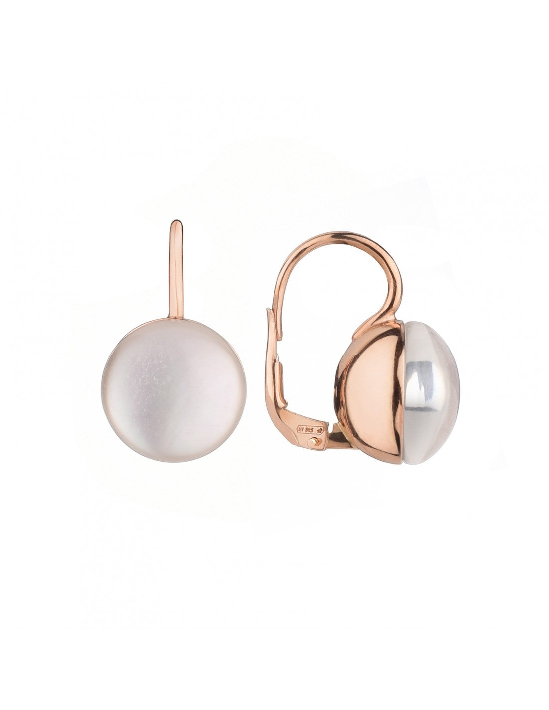 Orecchini in oro rosa 9K, doppietta madreperla, cristallo di rocca
