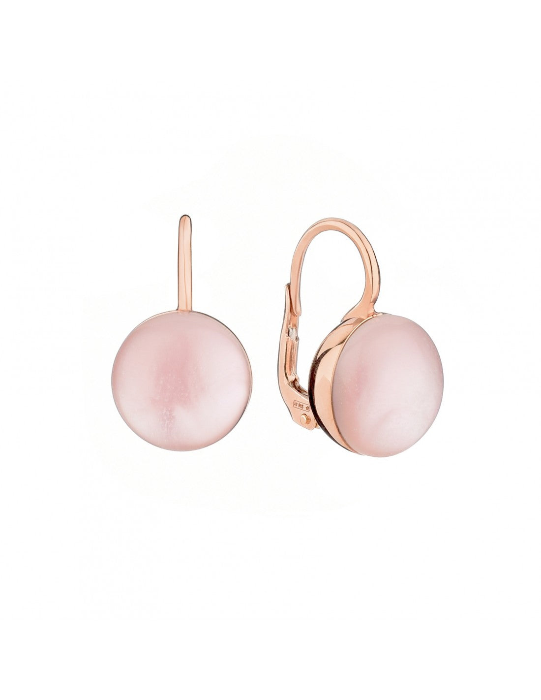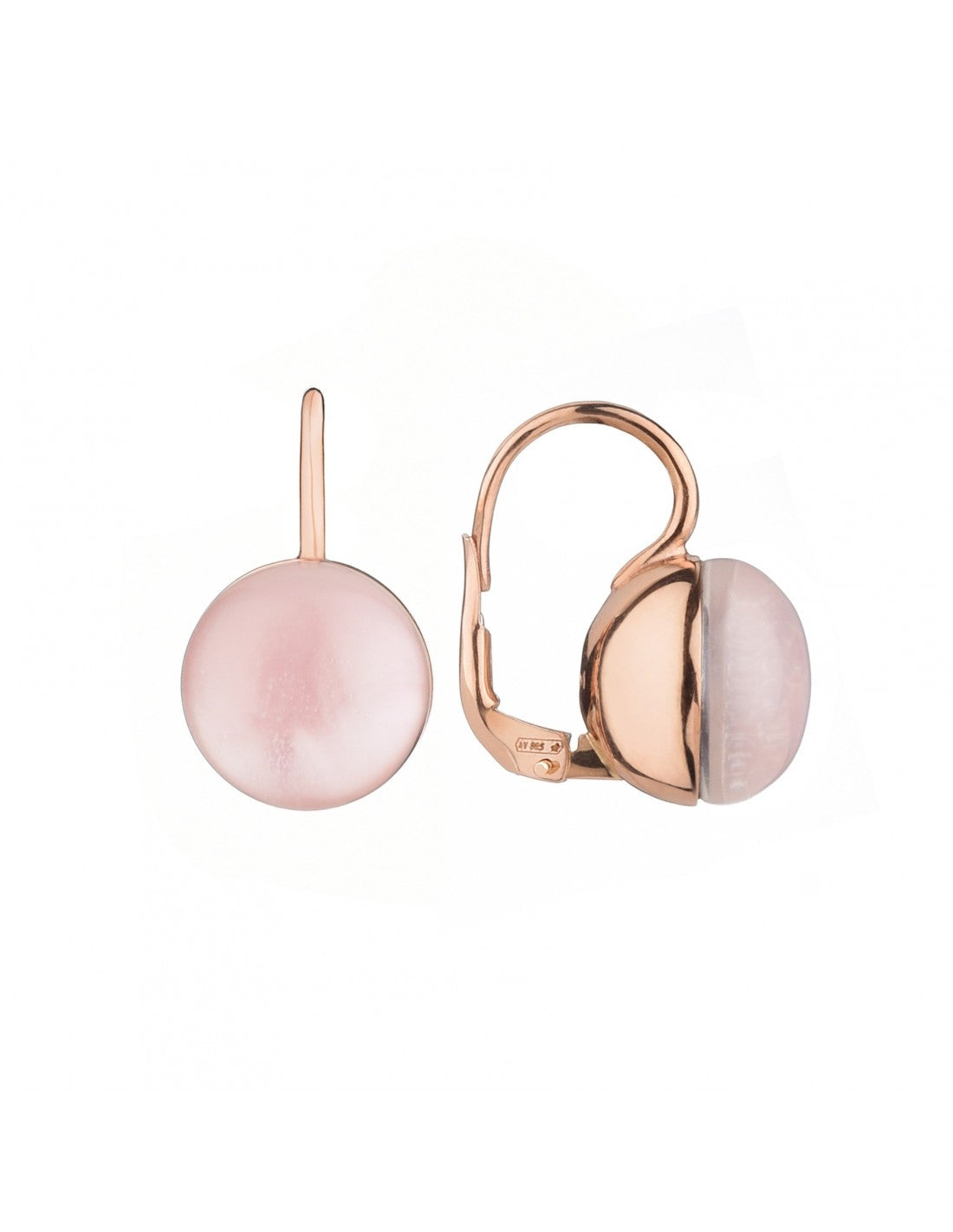 Orecchini in oro rosa 9K, tripletta pasta di corallo, madreperla, cristallo di rocca