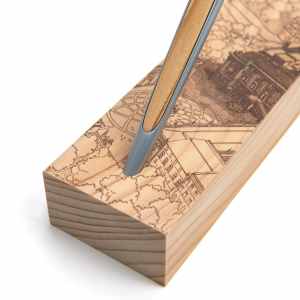 Stilo con punta a sfera e supporto da scrivania in legno di cedro.