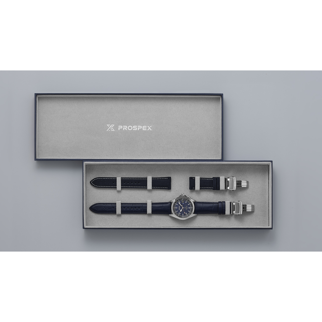 Questa inedita edizione limitata Europa rende omaggio al primo orologio sportivo Seiko del 1959, reinterpretato per gli esploratori moderni. Il tema cromatico si ispira al cielo notturno sopra il Monte Cervino. Il quadrante blu intenso con una sottile struttura verticale ricorda le notti limpide in montagna. Con due cinturini, uno in pelle di vitello blu navy e l'altro in nylon, questo Alpinist si adatta a tutti gli stili.