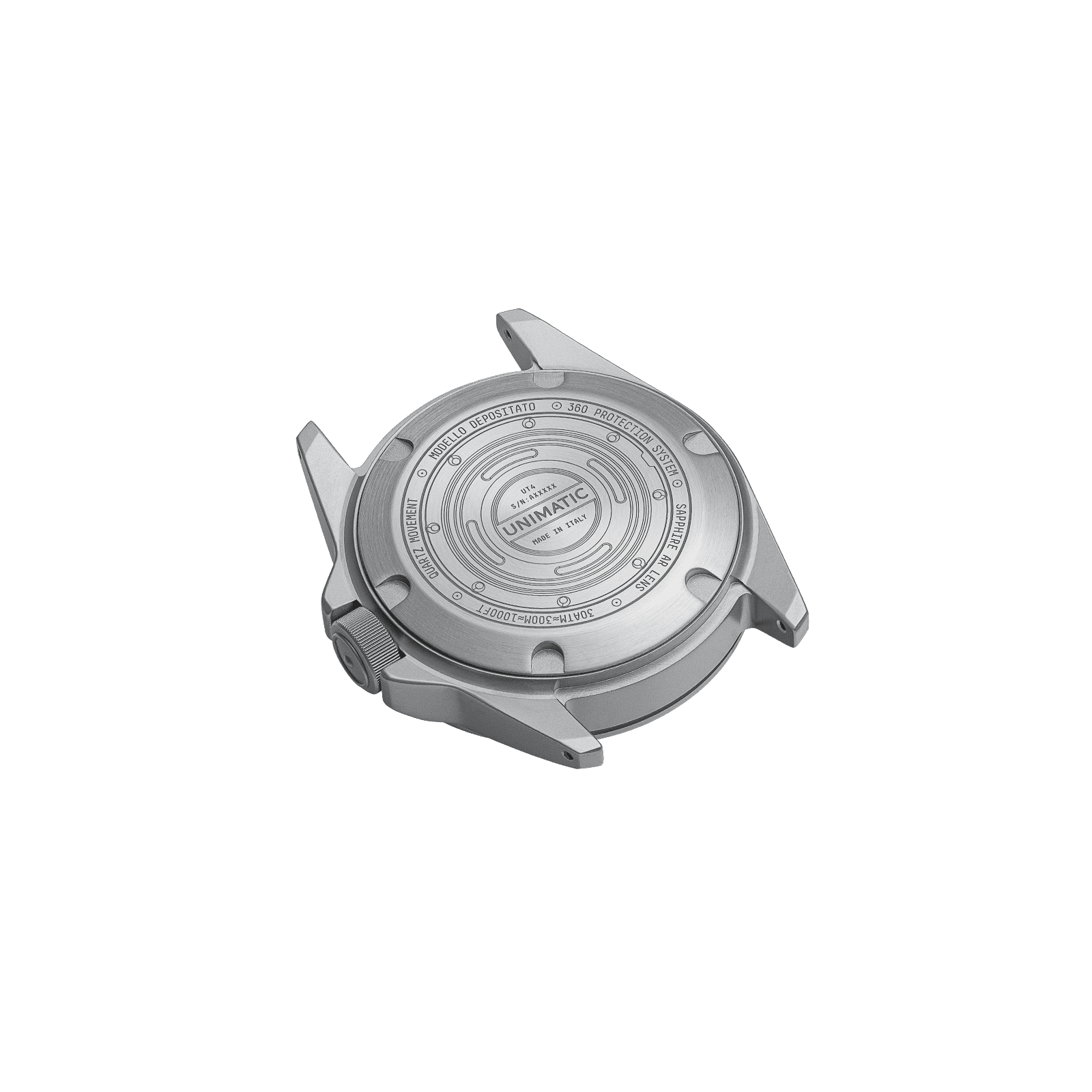 Il fondello presenta un'incisione a raggi X UNIMATIC a 360°. L'orologio è coperto da una garanzia mondiale di 24 mesi e viene fornito nella custodia resistente UNIMATIC.
