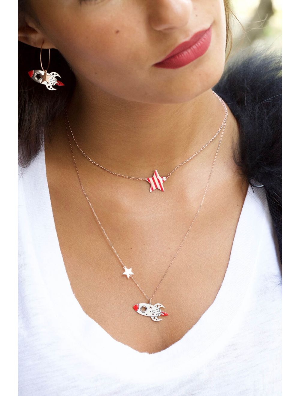 - Girocollo di catena con razzo e stella passante