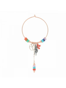 MAMAN ET SOPHIE MONO ORECCHINO CERCHIO GRANDE CHARMS E PIETRE PENDENTI RAINBOW