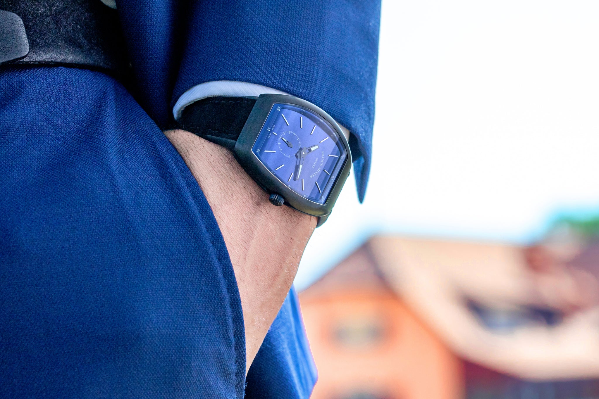 DIAL: BLU SOLEIL, MATTE TITANIUM HOURS INDEX, APPLIED BY HAND