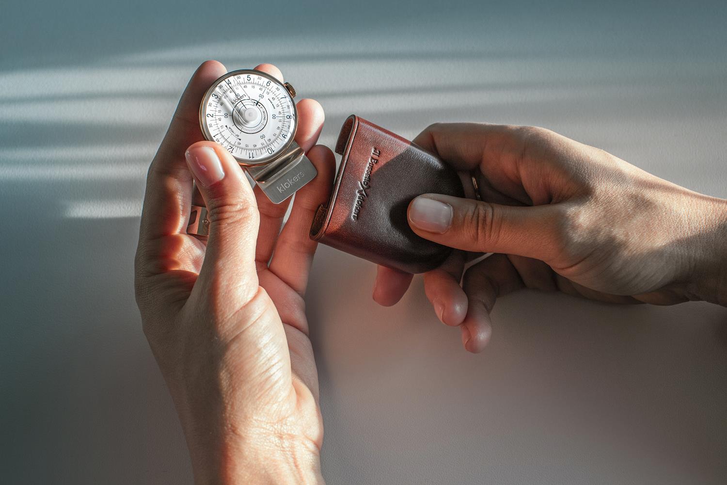 Dotato di un tocco di modernità in più, l'orologio da tasca diventa ora un oggetto da vetrina. Per raggiungere questo obiettivo, Klokers ha unito le forze con il produttore italiano di pelletteria Il Bussetto * per produrre questo superbo design.