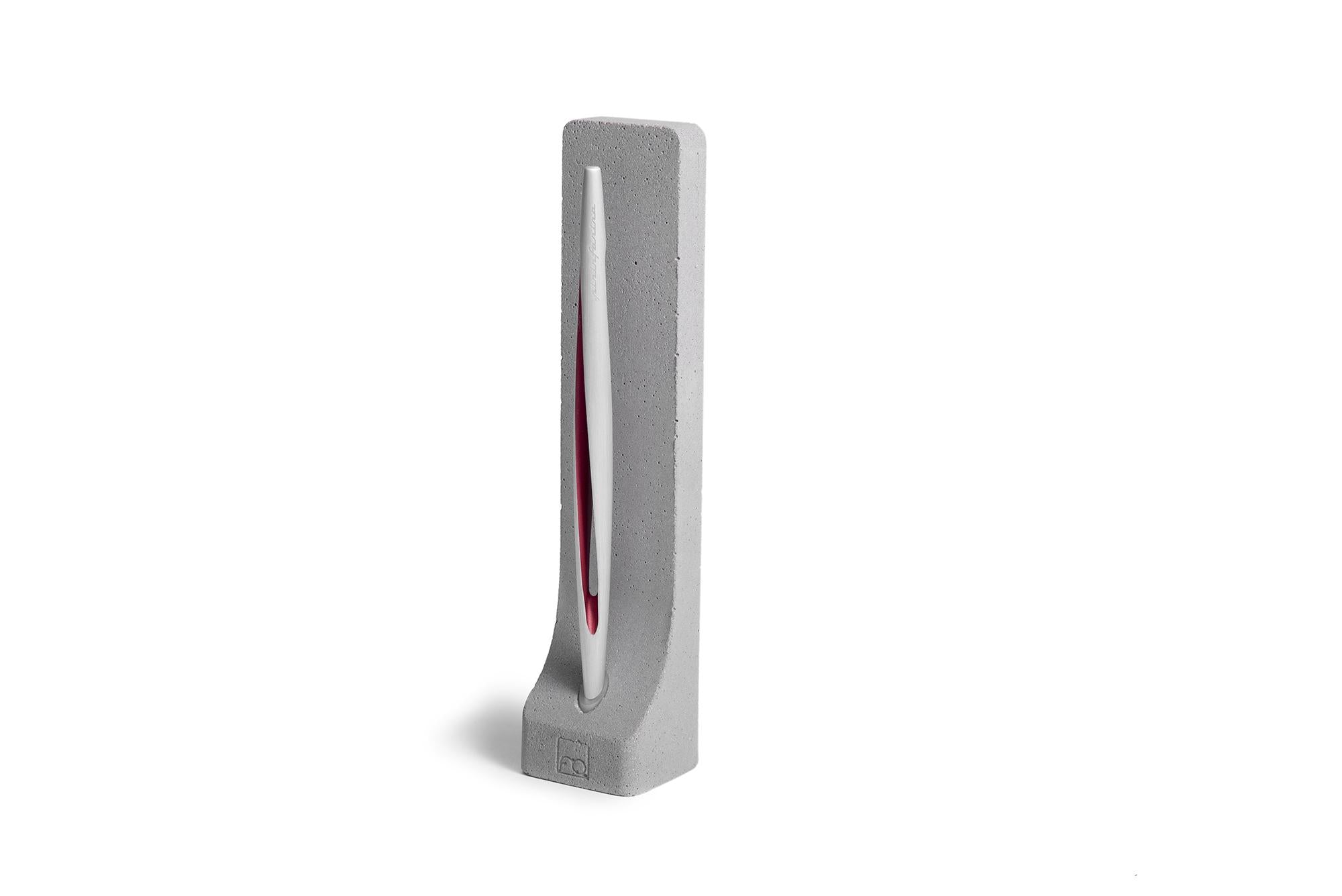 In alluminio aerospaziale con supporto in cemento grezzo.