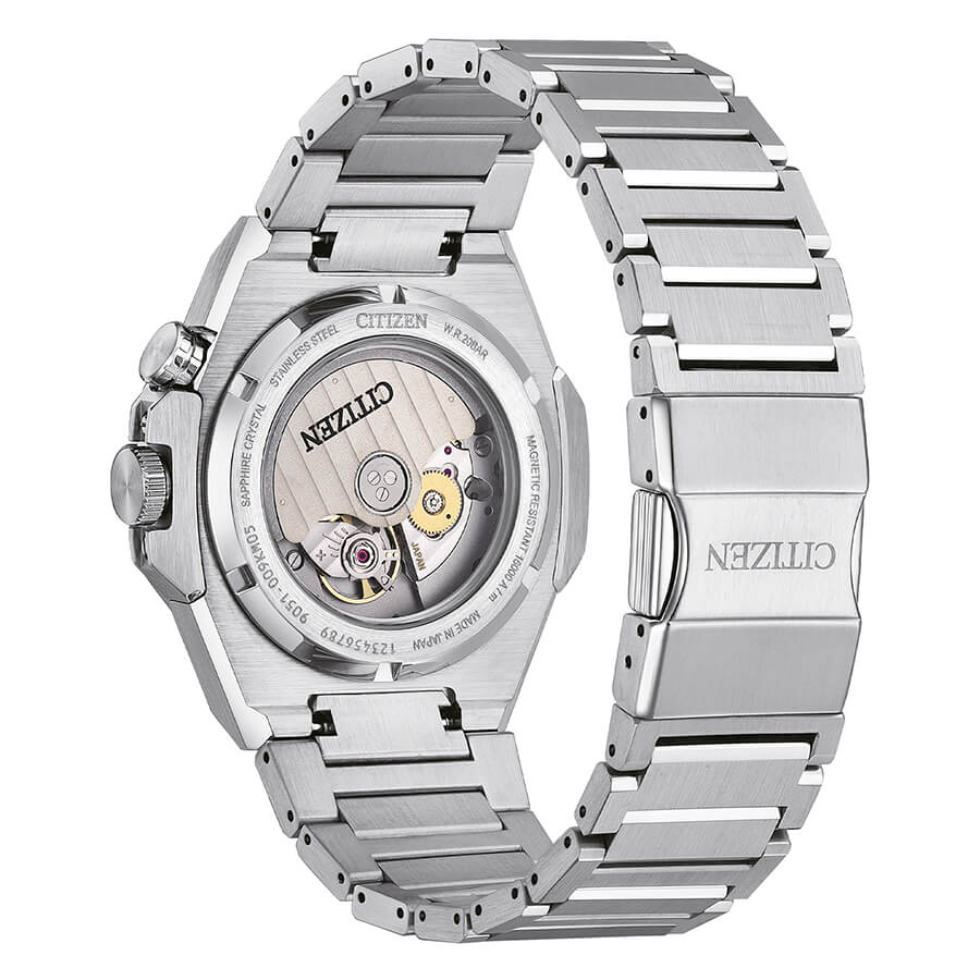 Il modello della Serie 890 si unisce alla collezione rivisitata di orologi meccanici Serie 8, abbinando uno stile elevato a movimenti automatici ad alte prestazioni per adattarsi ad ogni occasione. Presenta una cassa da 42,6 mm di forma ottagonale in acciaio inossidabile color argento, con le migliori tecniche di finitura di Citizen.